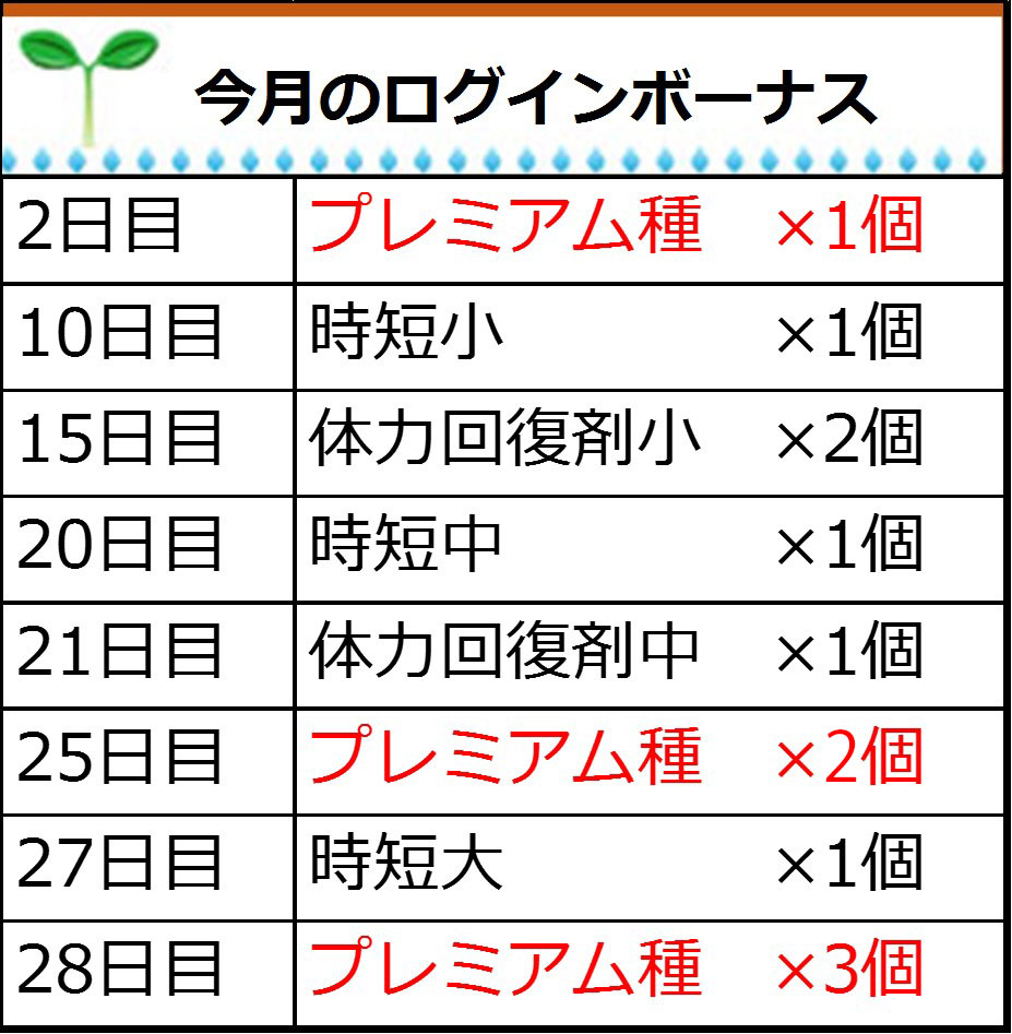 連続ログインで「プレミアム種」&「お世話アイテム」をゲットしよう!